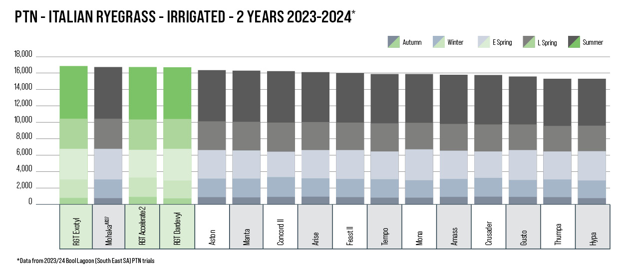 Introducing the next generation of Italian ryegrass genetics — RGT Dardevyl and RGT Exotyl — delivering prime performance in yield, feed quality, and flexibility across Australian pasture systems.